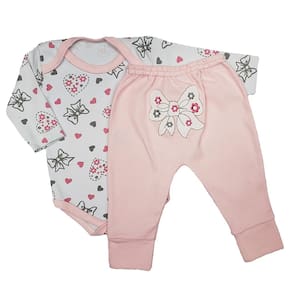 3x Conjuntos Body Estampado Manga Longa e Mijão Bumbum Bordado (6 peças)