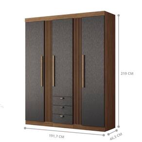 A comoda possui portas, gavetas e cabideiro, garantindo um amplo espaço para armazenar desde sapatos e roupas a todos os tipos de itens.