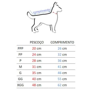 PP - Pescoço 24 cm - Comprimento 32 cm - Raças Chihuahua, Pinscher (mini), Yorkshire (mini) e filhotes de pequeno porte