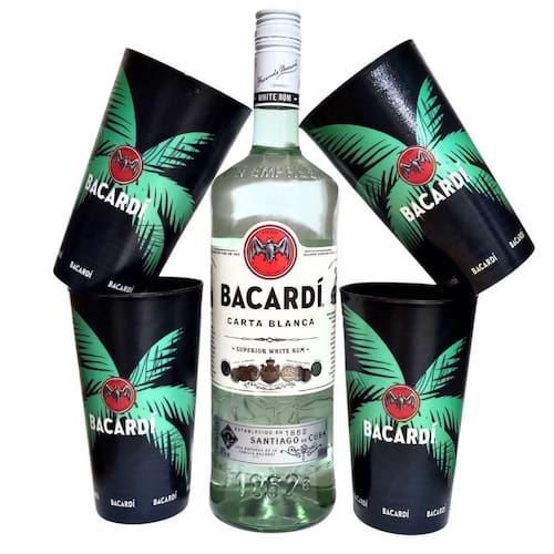 Kit Rum Bacardi Superior Carta Blanca 980ml + 4 Copos Personalizados O Bacardi Superior Carta Blanca descansa em tonéis de carvalho branco por 12 meses antes de ser engarrafado, além de passar por filtragem em carvão, isso garante seu caráter suave e balanceado. Ideal para a preparação de coquetéis tropicais, como o Mojito, Daiquiri e Caipirrisima.