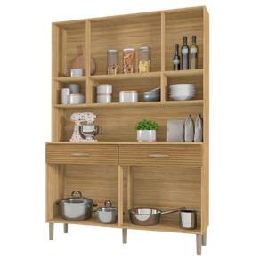 Produzido em MDP de 12mm e 15 mm, com oito portas - sendo duas portas superiores com vidro, dobradiças e corrediças 100% metálicas, duas amplas gavetas, puxadores ergonômicos em plástico resistente (poliestireno), pés fixo em plástico resistente (polipropileno).