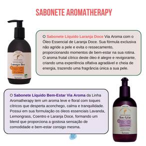 "Transforme seu banho em um momento de puro relaxamento com o Sabonete Líquido Via Aroma Bem-Estar e Laranja Doce! Formulado com óleos essenciais puros, este sabonete líquido proporciona uma limpeza suave e revigorante, deixando sua pele macia, hidratada e com um aroma delicioso.