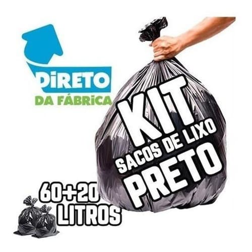 Kit saco de lixo 200un 60l super e 50un 20l reforçado preto Cor: preto 200 unidades de 60 litros Medida: 60cm x 78cm Espessura de revenda: 012 Espessura de fábrica: 06