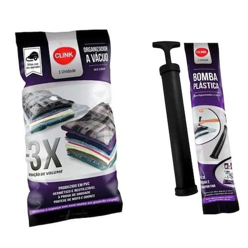 Bomba de Ar: compatível com qualquer saco organizador com entrada para aspirador.