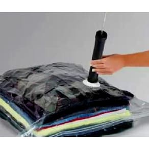Com este kit você economiza espaço duas vezes mais. Pois também não vai precisar levar o aspirador na sua viagem só por causa do saco a vácuo.