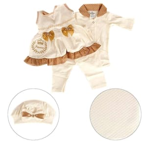 Conjunto de Roupa de Luxo Bege e Marrom Poa com 5 peças, é uma excelente escolha para o seu bebê, com um acabamento de ótima qualidade e super lindo, ideal para a sua princesinha Nosso enxoval é totalmente diferente do que você já viu, contendo uma touquinha com lacinho, um vestidinho, um body, uma calça e uma manta, para deixar sua boneca super linda