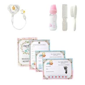 Conteúdo: - 01 Bolsa Maternidade - 01 Pagão Rosa - 01 Par de Luvas - 01 Vestido - 01 Mamadeira - 01 Pentinho - 01 Escova - 01 Chupeta com Prendedor - 03 Fraldas - 01 Kit de Certificados