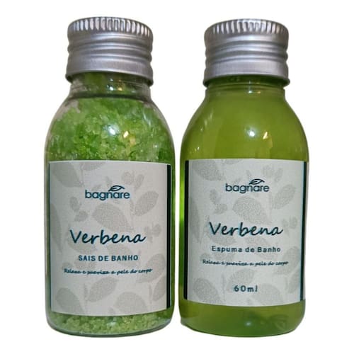 Kit com 1 Espuma para Banheira 60ml + 1 Sais de banho espumante 60gr Verbena VERBENA - Aroma cítrico, com notas frescas e verdes. Relaxante, uma agradável sensação de bem estar e frescor. Os Sais de Banho, relaxa e suaviza a pele do corpo, tornando seu banho um momento de prazer e repondo suas energias. Quando em infusão na banheira, proporciona uma forte sensação relaxante e , com uma agradável Fragrância. Pode ser como escalda pés. Espuma para Banheira - proporciona espuma cremosa, permanece por muito tempo Sobre a agua e uma agradável fragrância. Modo de usar: 1º Encher a banheira com a agua 2º ligar a hidromassagem 3º Coloque quantidade suficiente da espuma para banheira em água morna. Deixe-se relaxar e sinta seus benefícios. Kit Acompanha: 1 Sal De Banho para Banheira Verbena 60g 1 Espuma De Banho e Banheira Verbena 60ml Produto não testado em animais. Marca: Não Informado