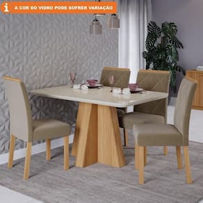Sala de jantar Maitê de 1,30x0,80 com 4 cadeiras Fernanda. Que tal reunir a sua família para um jantar? Nesse momento a Cimol vai está presente, proporcionando situações agradáveis e descontraídas! A mesa Maitê possui uma base em formato cruz, seu tampo é em mdf/vidro com bordas chanfradas e acabamento em laca. Já as cadeiras Fernanda são uma ótima opção pois a sua estrutura é toda em madeira tauari com pintura em verniz, o assento e encosto possui espumas de alta densidade proporcionando maior conforto. Com um design inovador, a Cimol busca sempre um estilo moderno para o seu ambiente! **IMAGENS MERAMENTE ILUSTRATIVA**