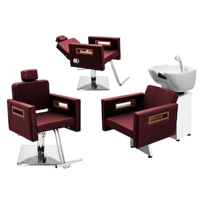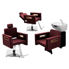 Kit Salão de Beleza 1 Cadeira Fixa + 1 Reclinável Quadrada + 1 Lavatório Tunísia - Cor: Bordô
