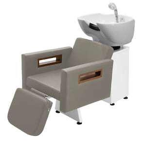 Kit Salão de Beleza 1 Cadeira Reclinável C/Ap Quadrada + 1 Lavatório C/Ap Tunísia - Cor: Fendi