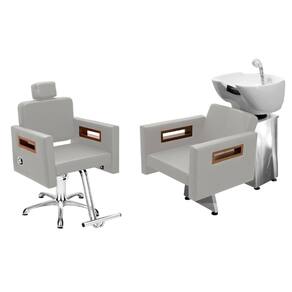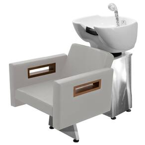 Kit Salão de Beleza 1 Cadeira Reclinável Estrela + 1 Lavatório Base Inox Tunísia - Cor: BrancoFacto