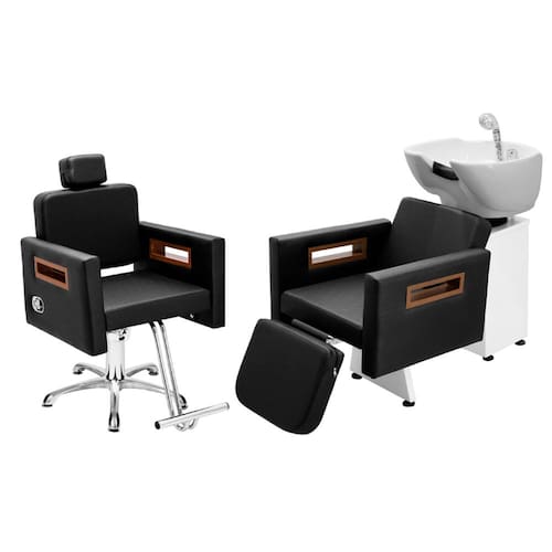 - 01 Cadeira Tunísia reclinável, base hidráulica, cabeçote ajustável e removível. - 01 Lavatório Tunísia com apoio móvel, base branca/preta, base de ferro galvanizada, cuba de porcelana móvel, registro cromado com função monocomando, não acompanha aquecedor. PREZADOS CLIENTES, PARA EVITAR RISCOS DE ACIDENTE, É IMPRESCINDÍVEL QUE ESTE LAVATÓRIO SEJA PARAFUSADO NO CHÃO PELOS PONTOS DE FIXAÇÃO DENTRO DA ESTRUTURA.