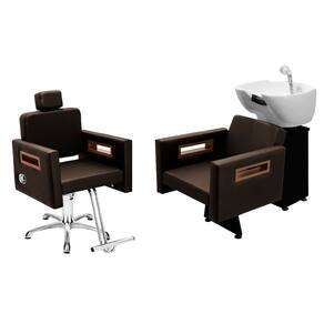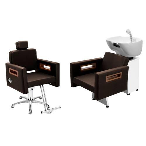 - 01 Cadeira Tunísia reclinável, base hidráulica, cabeçote ajustável e removível. - 01 Lavatório Tunísia sem apoio base branca/preta, base de ferro galvanizada, cuba de porcelana móvel, registro cromado com função monocomando, não acompanha aquecedor