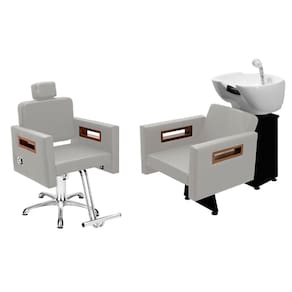 - 01 Cadeira Tunísia reclinável, base hidráulica, cabeçote ajustável e removível. - 01 Lavatório Tunísia sem apoio base branca/preta, base de ferro galvanizada, cuba de porcelana móvel, registro cromado com função monocomando, não acompanha aquecedor