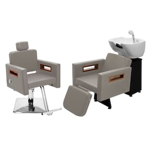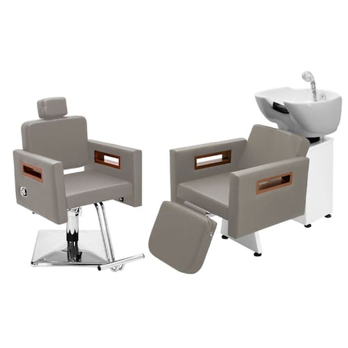 Kit Salão de Beleza 1 Cadeira Reclinável Quadrada + 1 Lavatório C/Ap Tunísia - Cor: Fendi