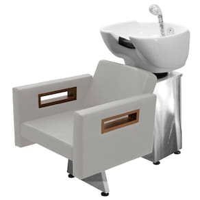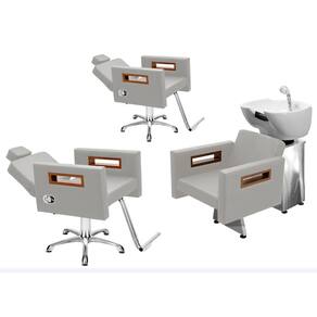 Kit Salão de Beleza 2 Cadeiras Reclináveis Estrela + 1 Lavatório Base Inox Tunísia - Cor: BrancoFacto