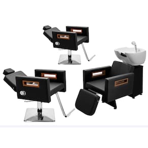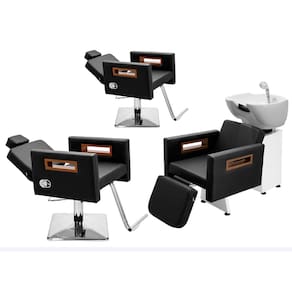 - 02 Cadeiras Tunísia reclináveis, base hidráulica, cabeçote ajustável e removível. - 01 Lavatório Tunísia com apoio móvel, base branca/preta, base de ferro galvanizada, cuba de porcelana móvel, registro cromado com função monocomando, não acompanha aquecedor. PREZADOS CLIENTES, PARA EVITAR RISCOS DE ACIDENTE, É IMPRESCINDÍVEL QUE ESTE LAVATÓRIO SEJA PARAFUSADO NO CHÃO PELOS PONTOS DE FIXAÇÃO DENTRO DA ESTRUTURA.