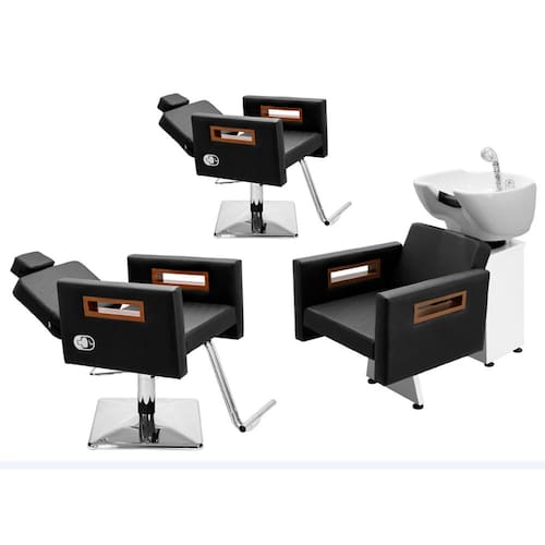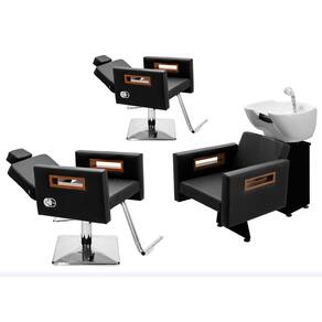 Kit Salão de Beleza 2 Cadeiras Reclináveis Quadrada + 1 Lavatório Tunísia - Cor: Preto