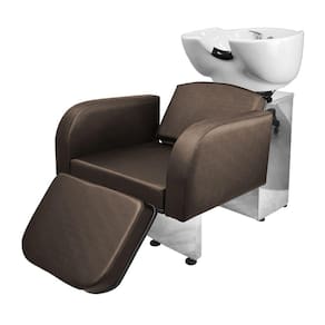 - 1 Lavatório Porcelana Destak Com Apoio Base Inox: com um design clean, braços estofados com detalhe arredondado na ponta, espuma de alta densidade, assento amplo e um apoio de pernas estofado com regulagem de altura que proporcionam conforto e comodidade para seu cliente durante a lavagem do cabelo. Cuba de porcelana branca com ajuste de altura e com ducha cromada e registro que tem a função de manocomando, que permite que você altere a temperatura da água sem precisar mexer na chave do aquecedor! Tudo isso com a alta resistência da base de ferro inox!