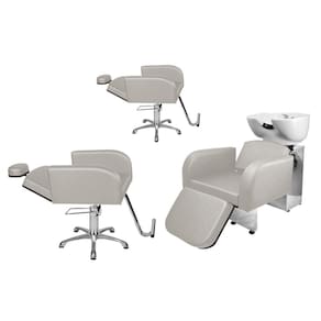 - 1 Lavatório Porcelana Destak Com Apoio Base Inox: com um design clean, braços estofados com detalhe arredondado na ponta, espuma de alta densidade, assento amplo e um apoio de pernas estofado com regulagem de altura que proporcionam conforto e comodidade para seu cliente durante a lavagem do cabelo. Cuba de porcelana branca com ajuste de altura e com ducha cromada e registro que tem a função de manocomando, que permite que você altere a temperatura da água sem precisar mexer na chave do aquecedor! Tudo isso com a alta resistência da base de ferro inox!