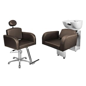 Kit Salão Destak Cadeira Reclinável Base Estrela + Lavatório Marrom Facto