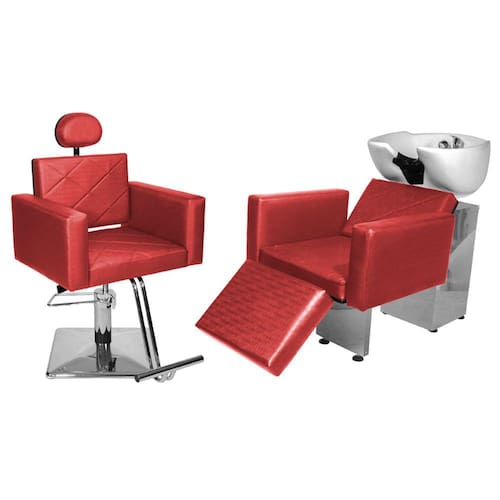 Kit Salão Evidence Cadeira Recl Quadrada + Lavatório C/Ap Vermelho