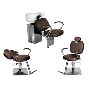 - 1 Lavatório Topázio Base Inox: com um design autêntico, acabamento em costura, assento amplo em espuma de alta densidade que proporcionam conforto durante o atendimento, braços em ferro cromado com estofado, cuba de porcelana branca com ajuste de altura, ducha cromada e registro com função manocomando que trazem praticidade pra você durante a lavagem dos cabelos. Tudo isso com a alta resistência da base de ferro inox!