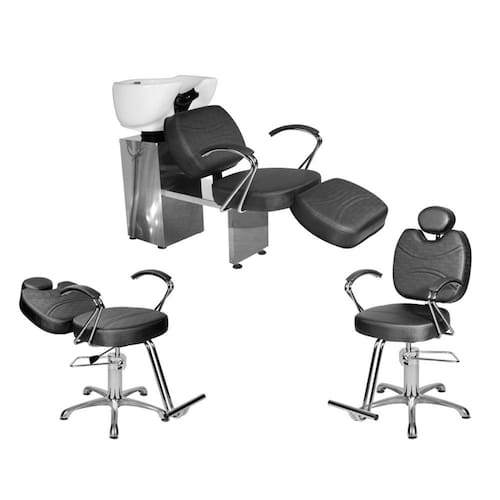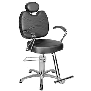 - 1 Cadeira Topázio Fixa Base Estrela: com um design moderno, detalhes em costura no tecido courino, espuma de alta densidade confortável e um assento amplo, cabeçote ajustável e removível, braços tubulares de aço com estofamento, peseira de aço e base hidráulica com trava para o giro. Ideal para cortes, penteados, escova e prancha!