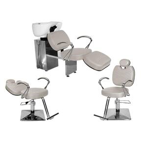 - 1 Lavatório Topázio Com Apoio Base Inox: com um design autêntico, acabamento em costura, assento amplo em espuma de alta densidade e apoio de pernas estofado com regulagem de altura que proporcionam conforto durante o atendimento, braços em ferro cromado com estofado, cuba de porcelana branca com ajuste de altura, ducha cromada e registro com função manocomando que trazem praticidade pra você durante a lavagem dos cabelos. Tudo isso com a alta resistência da base de ferro inox!