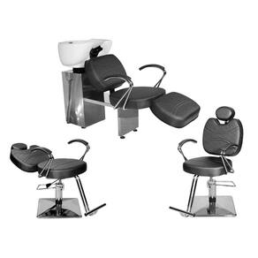 - 1 Lavatório Topázio Com Apoio Base Inox: com um design autêntico, acabamento em costura, assento amplo em espuma de alta densidade e apoio de pernas estofado com regulagem de altura que proporcionam conforto durante o atendimento, braços em ferro cromado com estofado, cuba de porcelana branca com ajuste de altura, ducha cromada e registro com função manocomando que trazem praticidade pra você durante a lavagem dos cabelos. Tudo isso com a alta resistência da base de ferro inox!