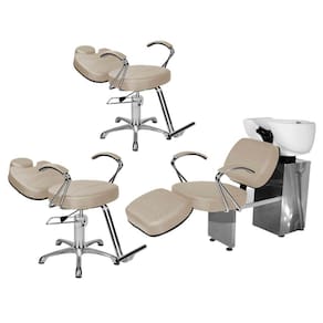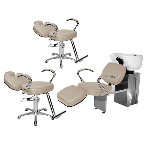 - 1 Lavatório Topázio Com Apoio Base Inox: com um design autêntico, acabamento em costura, assento amplo em espuma de alta densidade e apoio de pernas estofado com regulagem de altura que proporcionam conforto durante o atendimento, braços em ferro cromado com estofado, cuba de porcelana branca com ajuste de altura, ducha cromada e registro com função manocomando que trazem praticidade pra você durante a lavagem dos cabelos. Tudo isso com a alta resistência da base de ferro inox!