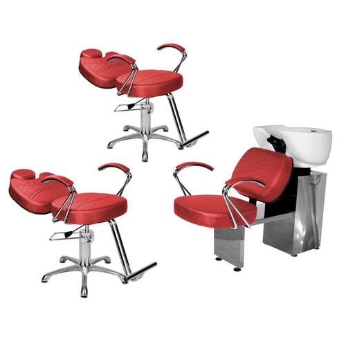 - 1 Lavatório Topázio Base Inox: com um design autêntico, acabamento em costura, assento amplo em espuma de alta densidade que proporcionam conforto durante o atendimento, braços em ferro cromado com estofado, cuba de porcelana branca com ajuste de altura, ducha cromada e registro com função manocomando que trazem praticidade pra você durante a lavagem dos cabelos. Tudo isso com a alta resistência da base de ferro inox!