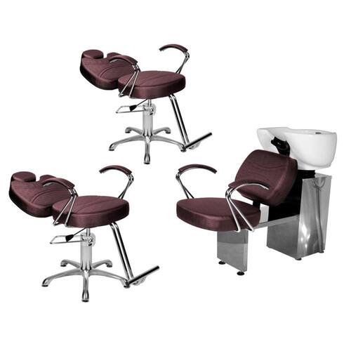 - 1 Lavatório Topázio Base Inox: com um design autêntico, acabamento em costura, assento amplo em espuma de alta densidade que proporcionam conforto durante o atendimento, braços em ferro cromado com estofado, cuba de porcelana branca com ajuste de altura, ducha cromada e registro com função manocomando que trazem praticidade pra você durante a lavagem dos cabelos. Tudo isso com a alta resistência da base de ferro inox!