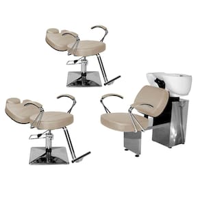 - 1 Lavatório Topázio Base Inox: com um design autêntico, acabamento em costura, assento amplo em espuma de alta densidade que proporcionam conforto durante o atendimento, braços em ferro cromado com estofado, cuba de porcelana branca com ajuste de altura, ducha cromada e registro com função manocomando que trazem praticidade pra você durante a lavagem dos cabelos. Tudo isso com a alta resistência da base de ferro inox!