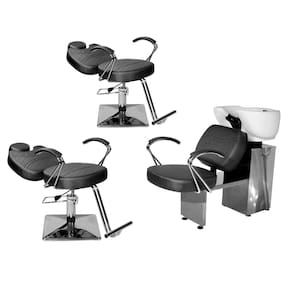 - 1 Lavatório Topázio Base Inox: com um design autêntico, acabamento em costura, assento amplo em espuma de alta densidade que proporcionam conforto durante o atendimento, braços em ferro cromado com estofado, cuba de porcelana branca com ajuste de altura, ducha cromada e registro com função manocomando que trazem praticidade pra você durante a lavagem dos cabelos. Tudo isso com a alta resistência da base de ferro inox!