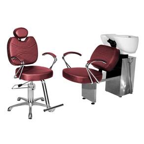 Kit Salão Topázio Cadeira Reclinável Base Estrela + Lavatório Bordô Facto