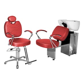 Kit Salão Topázio Cadeira Reclinável Base Estrela + Lavatório Vermelho