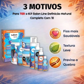O Kit Salon Line Definição Natural Completo com 10 itens é a solução ideal para quem busca uma rotina capilar completa, prática e eficiente. Desenvolvido especialmente para cabelos ondulados, cacheados e crespos, esse kit oferece cuidados desde a limpeza até a finalização, proporcionando definição intensa, hidratação, nutrição e controle do frizz. Com uma combinação poderosa de shampoo, tratamentos e finalizadores, ele garante fios mais saudáveis, alinhados, com brilho e movimento natural todos os dias.