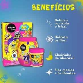 Transforme a rotina de cuidados dos pequenos em um momento de pura diversão com o Kit Salon Line Kids Bob Esponja Sos Cachos. Desenvolvido especialmente para os cabelos infantis, este kit completo da SALON LINE garante cachinhos super hidratados, definidos e totalmente sem frizz. Com a magia do Bob Esponja, seus filhos terão uma experiência alegre e prática, resultando em cabelos macios e cheirosos com um delicioso perfume de abacaxi.