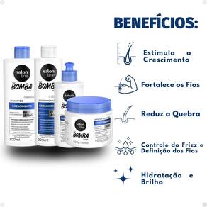 O Kit Salon Line S.O.S Bomba Crescimento Capilar é ideal para quem busca uma rotina completa de cuidados que estimula o crescimento saudável dos fios, fortalece, hidrata e proporciona brilho. Com fórmula enriquecida com ativos potentes como vitamina A, óleo de rícino, whey protein e D-pantenol, o kit trata desde a raiz até as pontas, promovendo fios mais fortes, macios e resistentes à quebra.