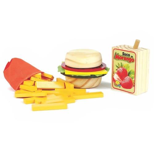 Especificações técnicas: - Marca: NewArt Toys - Modelo: Coleção Comidinhas Kit Sanduíche - Conteúdo da embalagem: 3 peças - Material: Madeira ecologicamente correta - Tamanho aproximado das peças: 19x10x6cm - Indicado para crianças a partir de 3 anos de idade - Certificação: Selo/cod Inmetro CE BRIBRICS 0070018 NM300/2002
