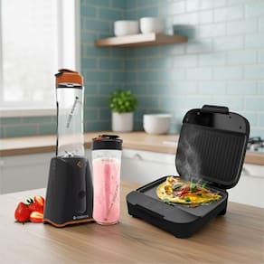 Kit composto por Sanduicheira Cadence SAN400 e Liquidificador Blender Cadence Zoop Contraste. Ideal para preparo rápido e prático de lanches e alimentos diversos.Termostato regulável