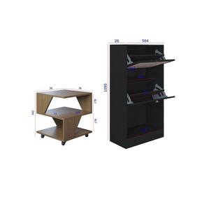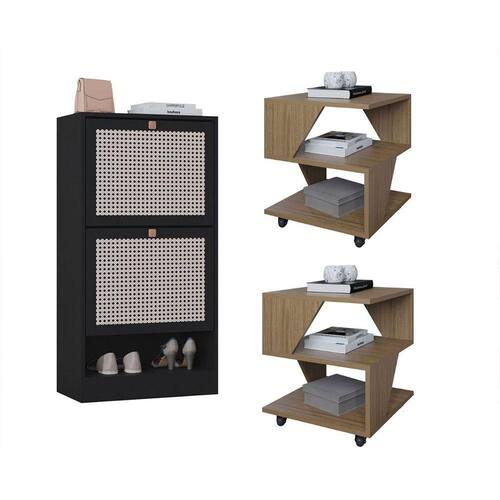 Design contemporaneo e cores modernas Estrutura em BP resistente e duravel Mesas com rodizios para facil movimentacao Sapateira com portas 3D imitando palha indiana Facil de montar produtos enviados desmontados