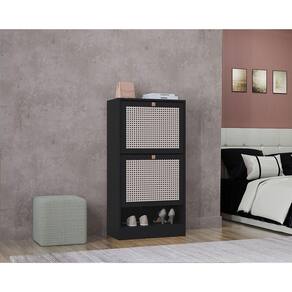 A Sapateira Tropical, com design vertical e portas com pintura 3D que imita palha indiana, oferece um toque sofisticado para o ambiente, sendo perfeita para organizar sapatos em quartos, closets ou lavanderias.