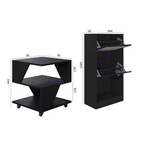 Kit Sapateira 2 Portas E 2 Mesas De Cabeceira/centro Poquema Preto Kit Moveis Spin/Tropical 2 Mesas de Cabeceira e 1 Sapateira 2 Portas Poquema Leve funcionalidade, organizacao e estilo para sua casa com o Kit Tropical da Poquema Moveis, composto por 2 Mesas de Cabeceira e 1 Sapateira. Com design moderno e estrutura em BP (Laminado de Baixa Pressao), os moveis sao resistentes a riscos, umidade e manchas, garantindo durabilidade e facil manutencao.
