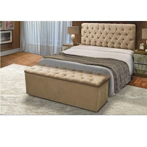 linda Conjunto Sapateira Baú E Cabeceira E Box Casal em Suede Bege. Ideal para quem busca modernidade para o quarto e espaço para guardar cobertores, roupas de cama, travesseiros, entre outros. Recomendado para cama casal padrão 1.38m x 1.88m.