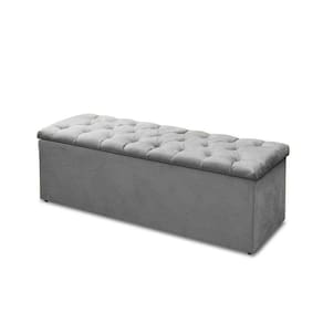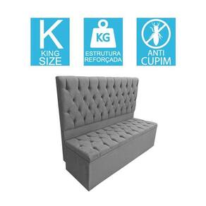 linda Conjunto Sapateira Baú E Cabeceira E Box King Siza em Suede Cinza. Ideal para quem busca modernidade para o quarto e espaço para guardar cobertores, roupas de cama, travesseiros, entre outros. Recomendado para cama king padrão 1.93m x 2.03m.