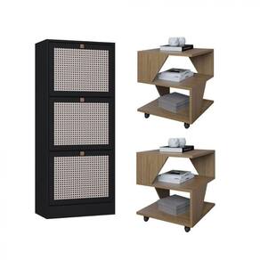 Kit Sapateira Spin Tropical 3 Portas E 2 Mesas De Cabeceira Carvalho/preto Kit Moveis Spin/Tropical 2 Mesas de Cabeceira + 1 Sapateira 3 Portas Poquema Leve funcionalidade, organizacao e estilo para sua casa com o Kit Tropical da Poquema Moveis, composto por 2 Mesas de Cabeceira e 1 Sapateira 3 Portas. Com design moderno e estrutura em BP (Laminado de Baixa Pressao), os moveis sao resistentes a riscos, umidade e manchas, garantindo durabilidade e facil manutencao.