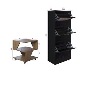 Destaques: Design contemporaneo e cores modernas Estrutura em BP resistente e duravel Mesas com rodizios para facil movimentacao Sapateira com portas 3D imitando palha indiana Facil de montar produtos enviados desmontados